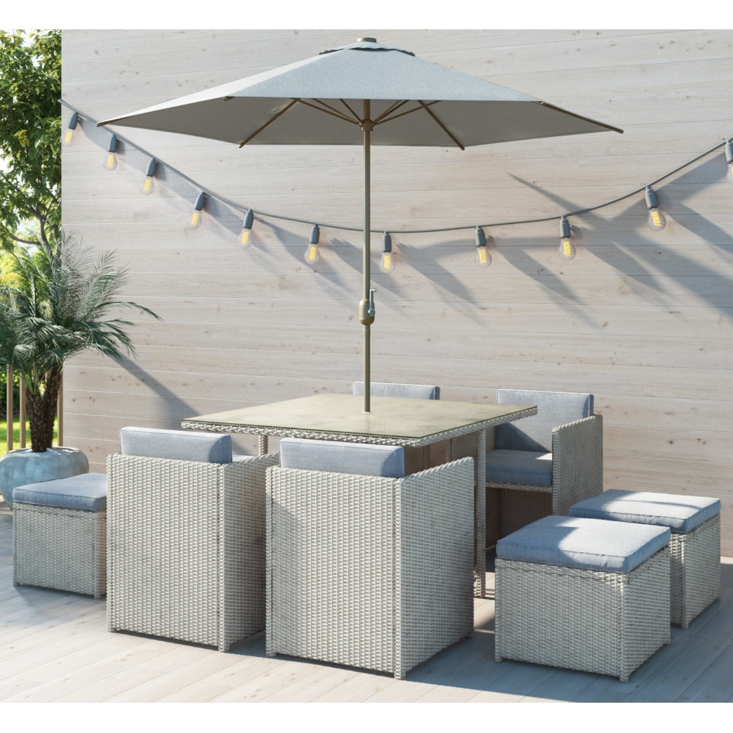 8 Seater Rattan Cube Outdoor Dining Set With Parasol Grey Weave De Laura James
